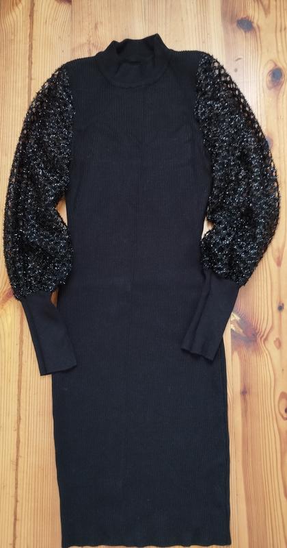 Платье хорошо тянется. Красиво подчеркивает фигуру. Красивый праздничный рукав. Размер s