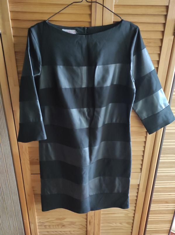 плотная костюмка, слегка эластичная с кожумом, также немного эластичным, но на эластан лучше не рассчитывать, он скорее для подчеркивания силуэта но состояние идеально длина 93 рукав 45 плечи 42 пог 49 пот 47 поб 54 есть молния сзади