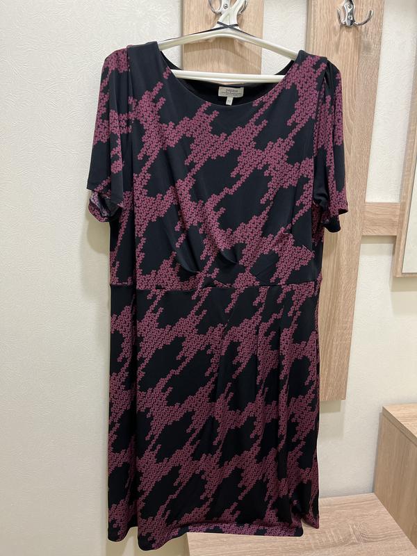 Плаття в яскраво чорно фіолетовий принт, 20 розмір ПОГ 54 ПОТ 51 Довжина 100 Короткий рукав На підкладці