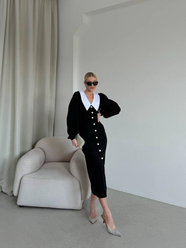 Теперь ваше любимое платье и с длинным рукавом 😍 Элегантное платье с белым воротничком 🔥 ▪️Мод: 311/74 ▪️Ткань: костюмка, воротничок-коттон ▪️Размер: 42-44 и 44-46 Платье с белым воротничком не теряют своей актуальности. Классический темперамент модели придает черный цвет. Завершают образ декоративный воротник и белые пуговицы. Черный цвет подходит для любого сезона. А чорна платье - это всегда лучший выбор для любого мероприятия. Она олицетворяет современный минималистичный подход и создает основу для множества твоих невероятных образов. В живу ✅