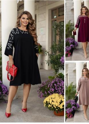 Ткань: вышивка на сетке, креп-дайвинг, Длина: 107-109 см Длина рукава: 55-57 см Рост модели: 168 см Сезон: осень-весна Производство: Украина