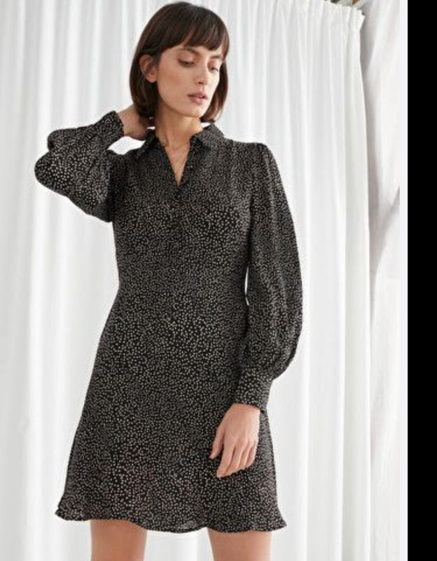 Платье на пуговицах до талии,талия отрезное дальше свободно,застежка на боковую молнию с пышным рукавом в размере указано 42 маломерит, подойдет на М,Л.