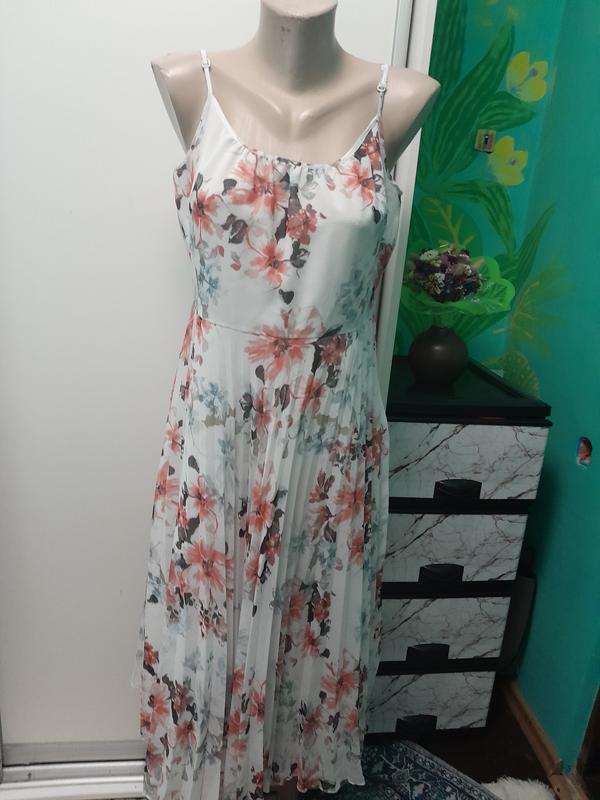 Сарафан платье на бретелях миди юбка плиссе в цветы