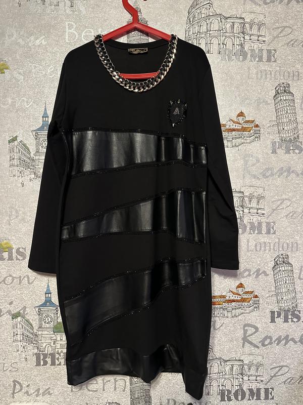 Платье черного цвета с кожаными вставками, в идеальном состоянии