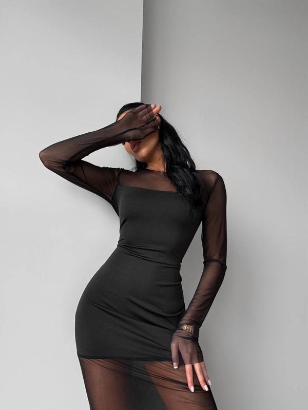 Сукня🤩 Модель 320 Розмір: 42-44, 46-48 Тканина: мікродайвінг+сітка Колір: чорний Розкішна перлина нової колекції - сукня, у довжині міді😍 Підійде на будь-яку подію❤️