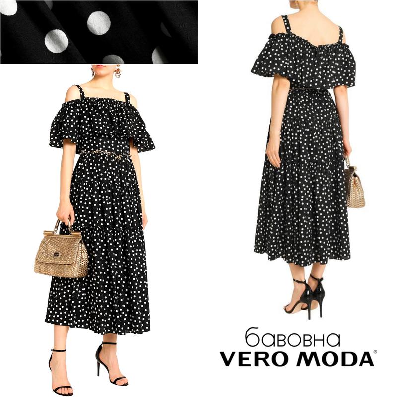 Vero moda хлопковое ярусное платье в горошек с воланами