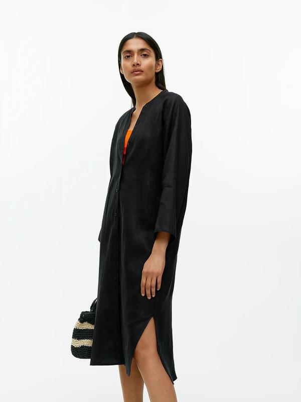Состав: 100% лен Linen Shirt Dress платье-рубашка из мягкого, чистого льна фасон с длинными рукавами воротник-стойка застежка спереди разрезы по боковым швам изогнутый подол