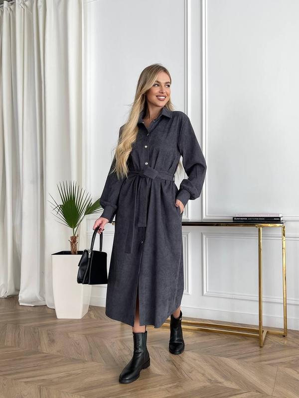 Платье рубашка вельвет ниже колена 42-52 р-р