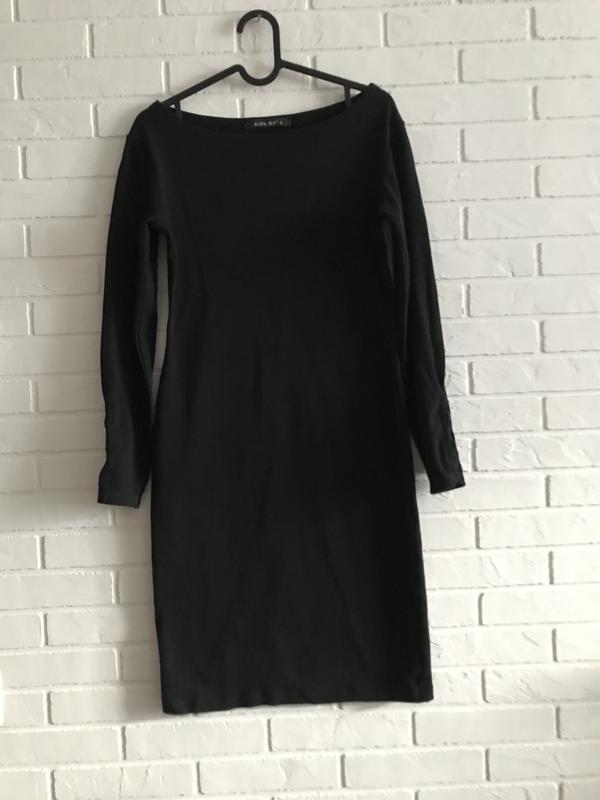 Маленька чорна сукня розміру S, тканина трикотажна, м’яка, приємна до тіла, довжина 93, довжина рукава 55 см, ПОГ 46 см, ПОТ 40 см, ПОБ 48 см. Стан відмінний!