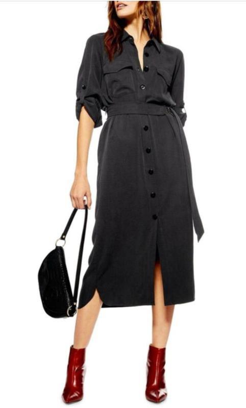 покупка до 200 грн с оплатой на карту!!️ платье на пуговицах темно-серого цвета. размер 8. первое фото реальная модель платья. рукав подкачивается.цвет как на 1 фото,камера мигает.. состояние-без дефектов