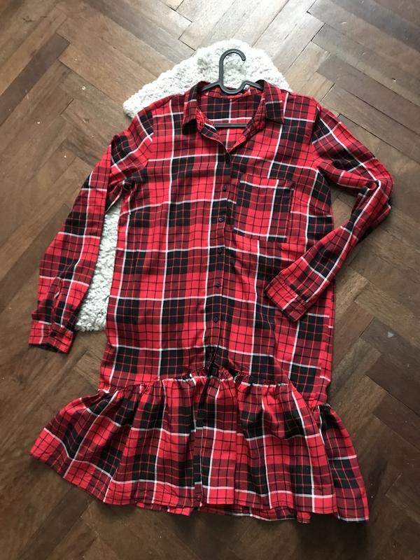 Рубашка-плаття вільного крою, у яскраву клітинку, приємна на дотик тканина (віскоза). Заміри: довжина 100 см, довжина рукава 65 см, ПОГ 51 см, ПОБ 53 см. Стан відмінний!