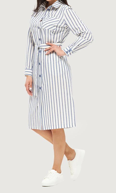 Сукня 100% льон, розмір 44, нова, приталений силует під пояс, без підкладки. Довжина сукні 105 см. Довжина рукава 58 см.