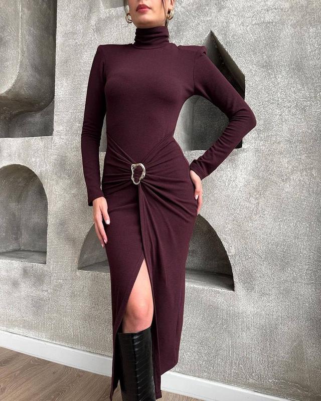 Новинка ❄️ Сукня гольф з плечиками та розрізом по ніжці. Практична та стильна, стане незамінною у твоєму гардеробі цієї осені 😍 Мод: 603 ▪️Тканина: джерсі (м‘яка, еластична, приємна до тіла) ▪️Кольори: марсала, чорний ▪️Розміри: 42-44, 46-48 ▪️Хороша якість ▪️Зверніть увагу, фото актуальної прикраси (пряжки) додано у публікації 🏷️Ціна: 800 грн чер