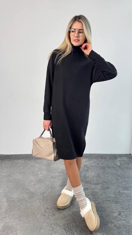 Сукня Мод. 0389 im Тканина: ангора в'язка (щільна) (тягнеться) Розмір: 42-44, 46-48, 50-52 Колір: чорний, блакитний, фрез, мокко, графіт, світло-сірий, бежевий, сірий меланж Ціна: 830 грн Сукня вільного крою, рукав приспущений, з боків розрізи, ворот підвертається. Тканина дуже тепла та мʼяка при дотику до тіла, не кошлатиться