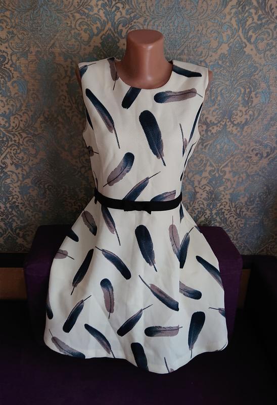 Красивое платье из фактурной ткани рисунок перья смотрится очень классно состояние идеальное Размер s Замеры Длина 86 Пог 46 Пот 35