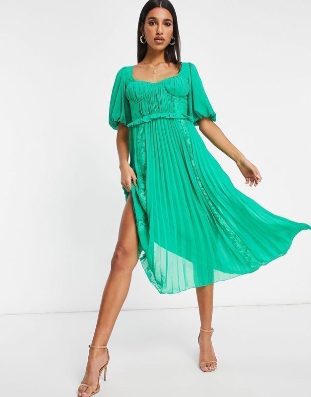 изумрудное платье миди с кружевными вставками asos Uk 16 Пог 53-54 Пот 43-44 Длина 128
