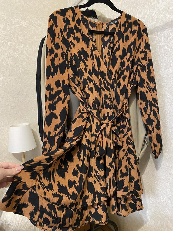 Легкое платье Quiz под пояс Двух ярусная юбка Леопардовый принт Объемный рукав на резинке Размер указан 18 Подойдет на XL-XXL Пог 56 Плечи 42 Рукав 60 Пот 47, затягивается поясом Длина 90 Платье не ношено