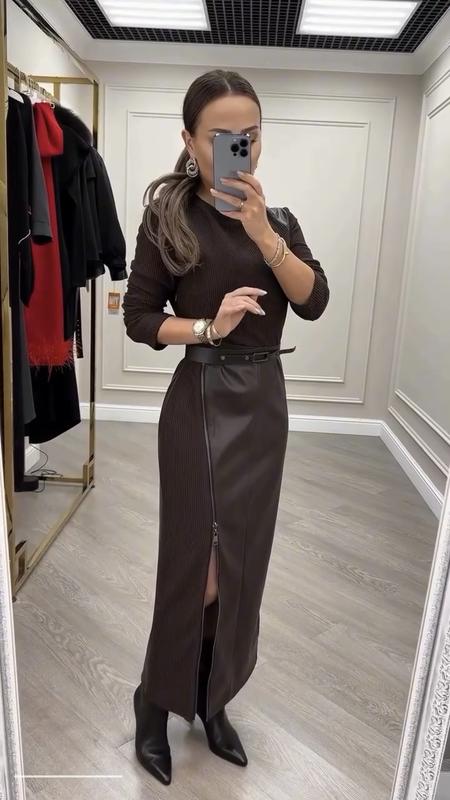 Сукня Мод. 357 ▫️Ткань : ангора рубчик с начесом + эко-кожа ▫️Размеры : 42-44, 46-48, 50-52 ▫️Цвет: шоколадный, черный ▫️Цена : 920 грн 🔥 ( + пояс 100 грн ) Платье в трендовом цвете этого сезона 😍 Красиво ложится по фигуре, подчеркивает талию 🤍филат