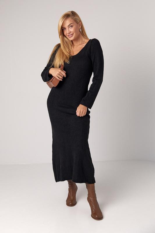Довга в'язана сукня з v-подібною горловиною - чорний цвет, l (є розміри)