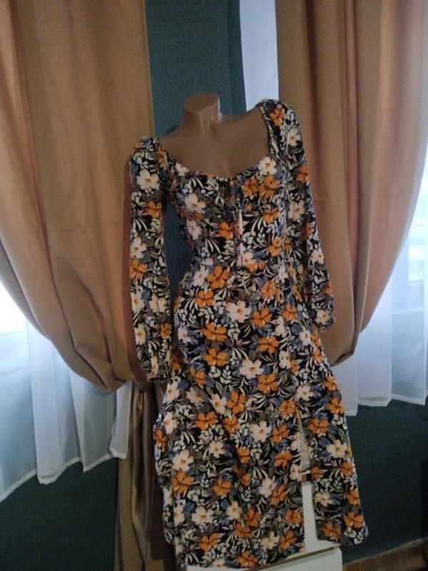 Платье миди в цветочный принт с разрезом на ножке вечерняя, коктальная женская