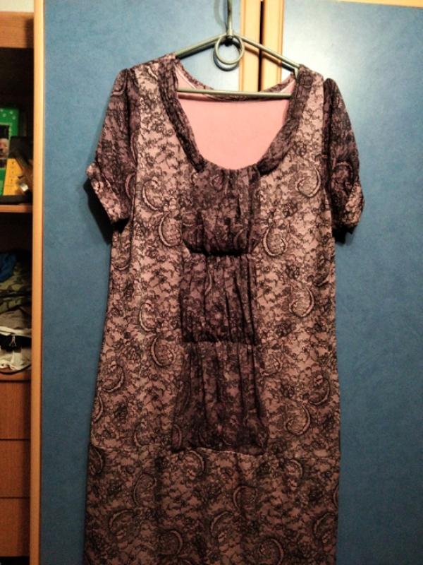 Платье оттенок более сиреневый, камера не схватила.Берок не имеет. есть подкладка. размер M, L, XL. вставки из гипюра: жабо, рукава. В идеальном состоянии, очень красиво тянется. Длина 92 Подмышками 48