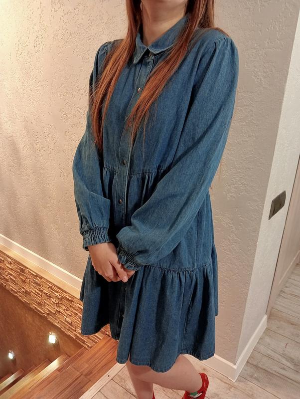 джинсова сукня в волани з об'ємними рукавчиками ліхтариками на бірці вказано 13 років ріст 158,але воно на свій розмір дуже більшомірить ,брати на С -М (на фото модель розмір М ріст 173см),заміри ог 46 см ,талія 47 см,рукав 62 см,бедра -вільні 70 см ,довжина від плеча 90см