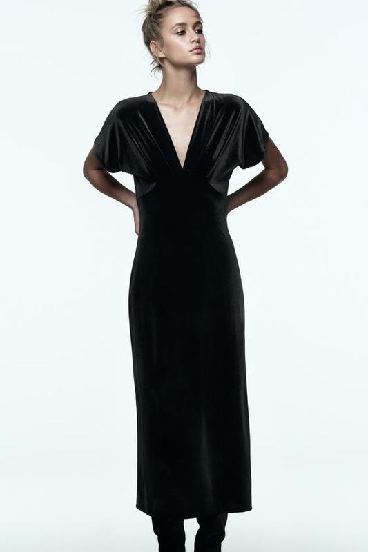 Размеры XS-XL Платье с v-образным воротником, со сборками и короткими широкими рукавами.