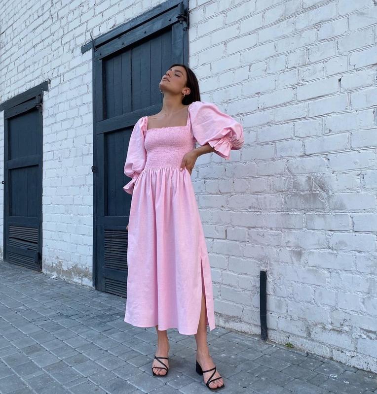 Платье в розовом цвете, украинского производителя HILL из льна. Длина 105 см, пог 51 ( резинка, можно менші), пот 64 максимально, резинка, можно менше, стегна вільні. Разрез по правой стороне 34 см. Рукав Длина 48см, полуобхват 30 см. Очень красивое платье. Склад 100% льон. Следов носки, дефектов, кат шока нет! Цена на сайте 2500 гривен