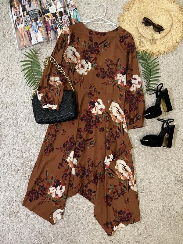 Для більш точного визначення, виміри, порівнюйте із вимірами подібної речі, а не зі своїми обсягами. Романтична асиметрична міді сукня у квітковий принт. Тканина тонка, не просвічується, не тягнеться. Застібається на ґудзик та блискавку позаду. Стан: ідеальний. Дефекти: немає. Розмір на бирці: 16 {Виміри виробу вимірюються у напівобхваті, а не від шва до шва!} Виміри виробу: Плечі 41 см., Рукав 59 см., Висота пройми 25 см., Ширина рукава 18 см., Напівобхват грудей 56см., Напівобхват талії 44см., Напівобхват стегон 65 см., Довжина по спині 97см., Довжина від плеча 129см., Довжина від плеча до талії 43см.. Склад тканини: 96% поліестер, 4% еластин. Країна виробник: Румунія. Бренд: V by Very. Оплата і доставка: Оплата на картку монобанк. Бронювання на оплату тільки 24 г. При змінах наміру купувати обов'язково повідомляйте! Доставка: На час введення воєнного стану, уточнюйте, чи можлива доставка до Вашого пункту. Актуальні новини можна уточнити на сайті перевізника та за номером телефону контакт-центрів. Не забудьте ПІДПИСАТИСЯ, щоб бути в курсі всіх новинок та розпродажів!
