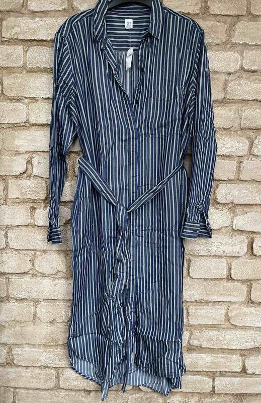 Платье халат GAP Классная качественная ткань 100% лиоцел, Застежка на потайные пуговицы, Хорошо смотрится и с поясом, и без, Ровный прямой свободный крой, Размер М ПОГ 59см, Плечи 46см, Рукав 60см, Плечо 13,5см Длина по спинке 125см, спереди 113 см,