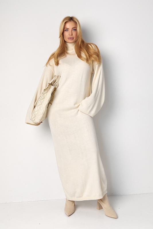 Довга в’язана сукня прямого крою - кремовий цвет, l (є розміри)