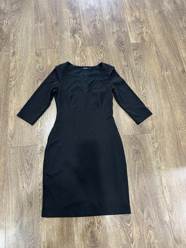 Черное платье в офис р44 Длина 89см, пог 41см, рукав 42см Платье плотное с подкладкой, молния под левой рукой