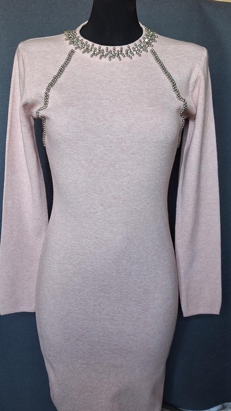 Нарядное красивое теплое платье розового цвета. ПОГ 44 см, длина по спинке 98 см, длина рукава 60 см.Склад- 40% полиамид, 20%вискоза, 10% полиэстер, 20% modal, 10% эластан. Нова.