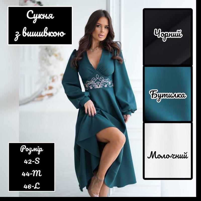 ПЛАТЬЕ С ВЫШИВКОЙ НА ТАЛИИ Модель 7541 Размеры: S(42), M(44), L(46) Ткань: костюмная + вышивка Длина платья: 115 см Длина рукавов: 65 см Цвета: черный, молочный, бутылочный Элегантное миди-платье с контрастной вышивкой на талии. Глубокий V-образный вырез визуально удлиняет шею, добавляя образу романтичности, а длинные рукава с легким объемом придают мягкость и изящество линиям. Контрастная вышивка на поясе подчеркивает талию и создает гармоничный силуэт. Это идеальный выбор для торжественных мероприятий, вечерних выходов или романтических свиданий. Есть видео обзор.