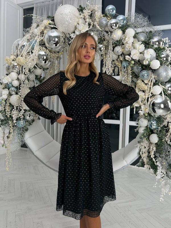 Модель 560 Женское платье Размерный ряд S,M,L,XL Платье из сеточки, на подкладке Талия и манжеты также на резинке Очень красивая и нарядная модель Супер качество Цена 885 грн