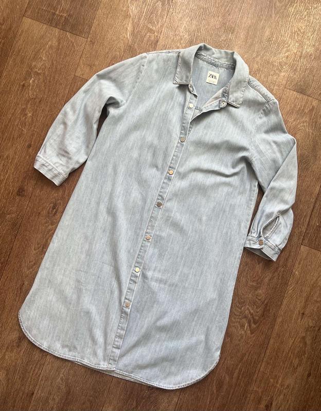 Платье джинсовое фирмы Zara, на кнопках, размер М, длина 95 см, полуобхват груди 51 см, полуобхват бедер 56 см, длина рукава 47 см, рукав 3/4 можно носить под пояс, стильно смотрится