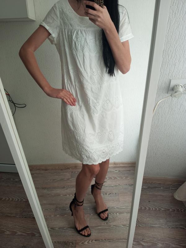 Нежное хлопковое легкое платье прямого кроя из прошвы, белоснежного цвета. пог 56 Пот 52 плечи 35 длина 90 состояние отличное