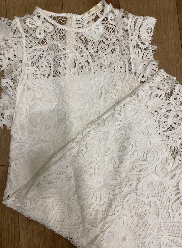 Роскошное платье белого цвета с кружевом. Длина: 110см,