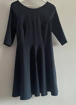 Платье темно синего цвета. 88% полиэстер, 12% эластан. Очень удобная и без дефектов.