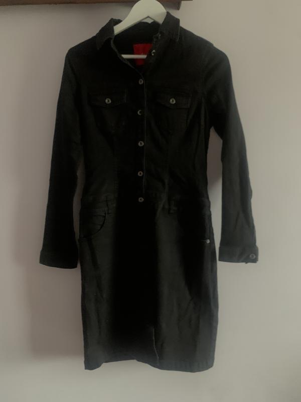 Черное джинсовое платье. Обтисла. 68% бавовна, 21% поліестер, 9% вискоза, 2% еластан. Подшивка 100% хлопок. Ношена 2-3 раза, дефектов не имеет.