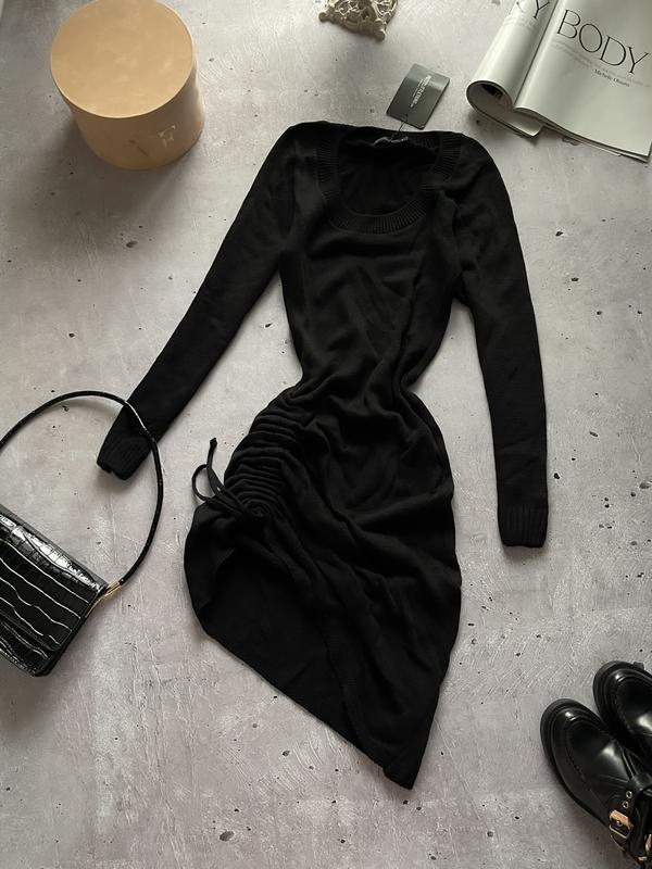 Платье вязкое с утяжкой Размер С Замеры: Плечи 36 см Грудь полухват 36-44 см тянется Талия 30-35 см Бедра 36-46 см Длина 103 см длинный край, затяжку можно распускать или затягивать как больше нравится до 68 см меньше всего Рукав 62 см Новый товар с биркой