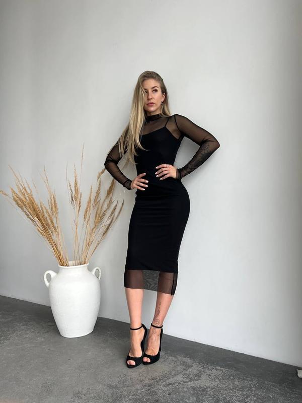 Фото реал В наличии Мод#203 Сукня 2-ка Тканина : масло , стрейч сітка Размеры :42-46(Универсал) Кольора :чорний Цена :950 грн Дуже крута новинка ! Платье которое состоит из двух платьев 💕 Идеально лягая по фигуре, ткань очень приятная к телу, сетка м`ёнка ( не когда-либо), есть прорезь для пальца❤️