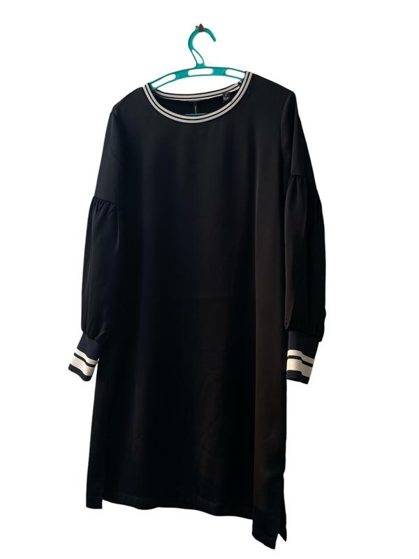 женское черное прямое платье с круглым вырезом, выполненное в стиле Classic из коллекции премиального бренда SCOTCH & SODA
