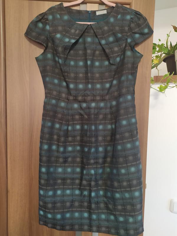 Сукня-футляр від відомого англійського бренду Per Una (найвідомішого суббренду британського рітейлера Marks and Spencer). Завдяки своєму лаконічному крою сукня-футляр є універсальним предметом гардеробу. Її можна одягнути на свято, діловий захід, в офіс, на прогулянку, в театр або на романтичне побачення. Можна одягати як самостійну річ, так і в якості сарафана ( під низ гольф-водолазка). Сукня відрізана по талії, повністю на підкладці. Спереду оздоблена складками, Горловина кругла. Рукав короткий Чудовий складник тканини: віскоза, вовна, шовк, поліестер. Вказаний розмір 16L. Заміри і додаткову інформацію з радістю надам за запитом.