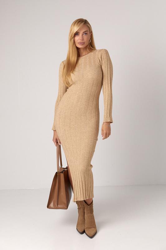 Довга силуетна сукня з розрізом на нозі - світло-коричневий цвет, l (є розміри)