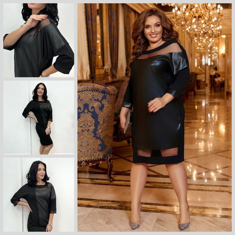 Платья из экокожи с сетчатым декором от 42 до 56 размера