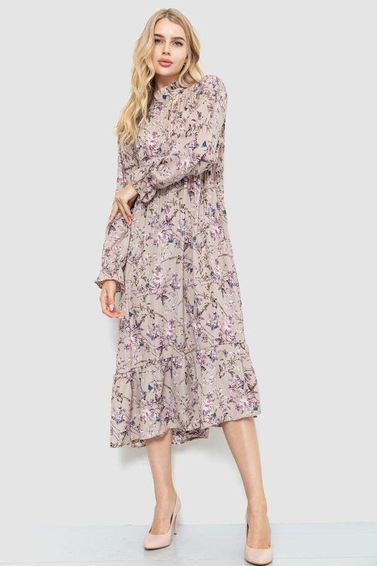 Платье свободного кроя с цветочным принтом, цвет мокко, 204r201