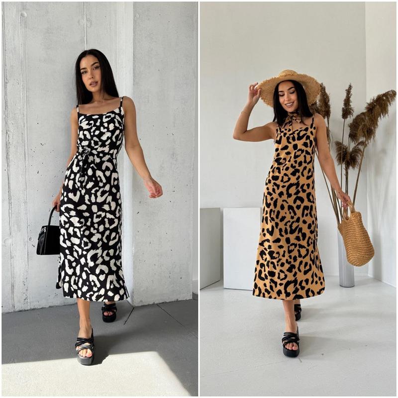 Платье софт длина миди без рукавов с принтом леопард размеры норма