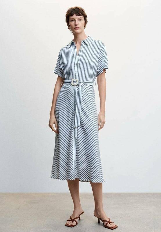 Новое льняное платье миди-рубашка с поясом длинное платье на пуговицах mango новое платье...