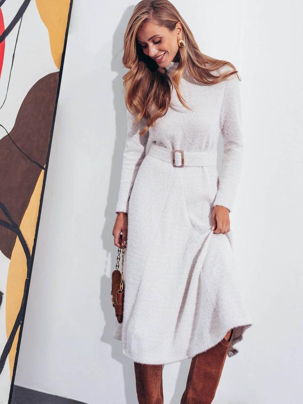 Трикотажное платье клеш серая миди длины. Изделие с невысокой горловиной и длинными рукавами. Юбка с клинообразным краем. Без застежки. Комплектуется поясом из основного материала с пряжкой. Оттенок изделия может отличаться. Материал/cклад: трикотаж с шерстью (35% шерсть, 35% вискоза, 30% полиэстер); Растяжимость: слегка тянется (2-3 см); Замеры изделия в 44 размере: Длина по спинке: 115 см; Длина рукава: 58/67 см; Параметры модели: 88х66х95, рост: 170 см. ❗ Все заказы оформляются только через ЧАТ, через кнопку КУПИТЬ ➡️ отклонены. Страна производитель ➡️ Украина. 🚛 Доставка ➡️ "Новой почтой", "Укр-бытой" по будням, кроме СБ и НД. Доставка сплачивает покупатель. 👛 Оплата ➡️ 100% Передача на р/р ФОП "ПриватБанка" или после платья с авансом. Если посылку не забираете, аванс возвращаем по учету транспортных расходов в обе стороны. Доставка Укрпоштой всего по предоплате 100%. 📦 🔁 Обмен и возврат ➡️ за счет покупателя, при наличии оригинального и невредимого упаковки и ярлыков, отсутствия следов эксплуатации, стирки и ношения.